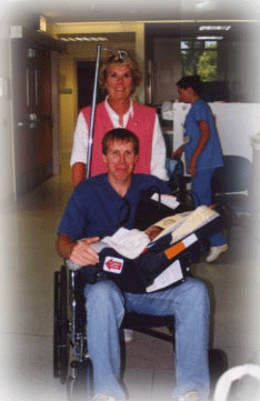 Dad being wheeled out, baby in the carrier